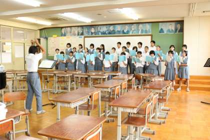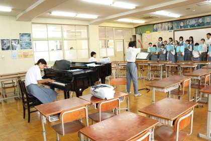 『君をのせて』の2部合唱の曲なのですが、1年生なので、男子の声の扱いが難しい。