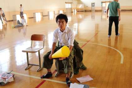 体育館を覗くと、3年劇の練習の途中・・・