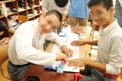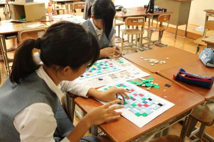 段ボール片に紙を巻き。貼り合わせている、この人達の努力が、この人達の笑顔が隠れていた。