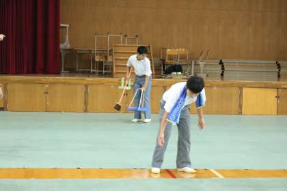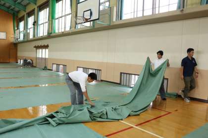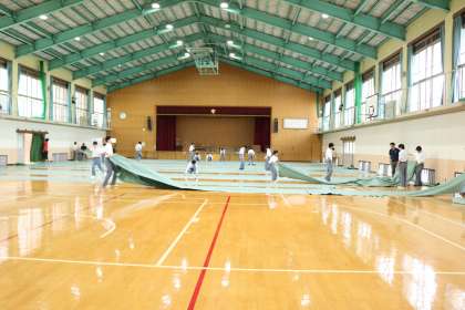 明日からの文化の部に備え、「体育館なら任しといて〜♪」の男子バスケット部が、体育館準備をしてくれました。