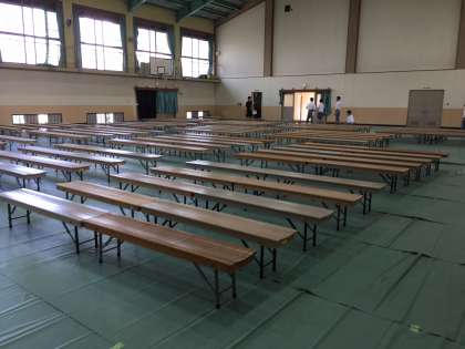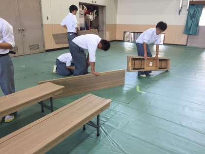 シート敷きを終えたら、長いす並べ・・・