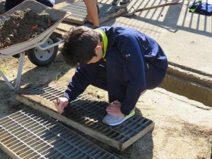 本日定休日の事業所のメンバーで、グラウンドのテニスコート側の溝をきれいに掃除しています。