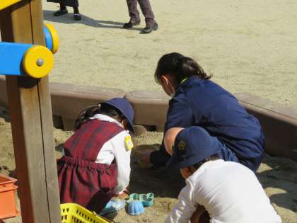 午前中はコンサートが行われ、そのあと園庭で園児たちが元気に遊んでいるところを補助しています。