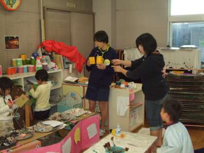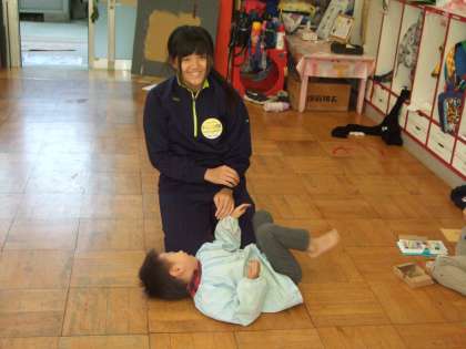 子供達のお外遊びを見守ったり。一緒に遊んだり・・・