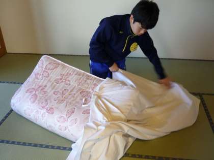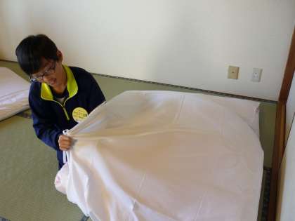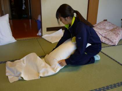 布団と枕のメイキングを頑張っています。