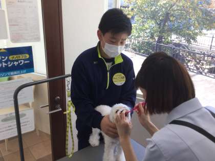 めばえ動物病院では、マルチーズちゃんの歯磨きの保定をさせてもらっています。