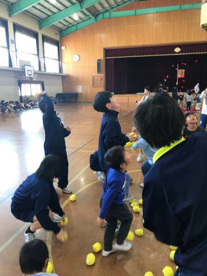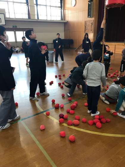 小学校訪問・・・玉入れ?