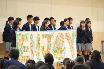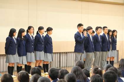 全校集会の中で、旧生徒会の皆さんが、1年間頑張ってきてくれた様々な思いを語ってくれました。