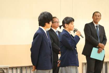 新生徒会が認証された後、後期の学級役員の認証式が行われました。