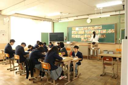 グループ毎に、机を合わせ話し合ったり、プリントに書き込んだり・・・