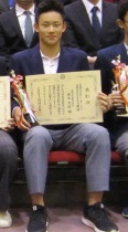 近畿大会で100Mと200Mの背泳ぎで優勝した功績をたたえられました。