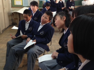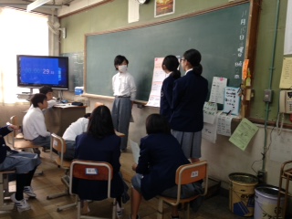 先日の小学校訪問のまとめポスターを作成し、クラスごとに発表会をおこないました。