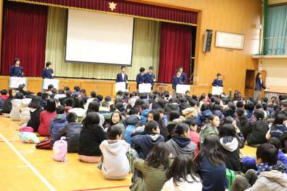 オープンスクール・・・6年生入場編 公開日 2017/12/06 更新日 2017/12/06 学校の様子 午後から30年度新入生のための【オープンスクール】が行われました。 評議員の生徒が、誘導し入場です。