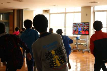なにやら、高らかに英語とビートを刻む音楽が・・・