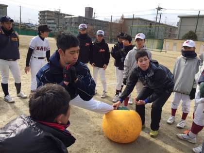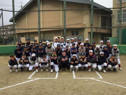 先輩に学ぶ・・・野球教室(2) 公開日 2018/01/11 更新日 2018/01/11 学校の様子 バランスボールを使っての、ピッチャーのトレーニング方法や、ピッチングのあれこれを伝授して頂きました。 日本体育大学野球部は、今年の秋の大会で日本一に輝いたそうで、辻先生はその立役者!!! 真剣に教えていただき、教わる方も真剣です。 記念撮影も撮らせて頂きました。