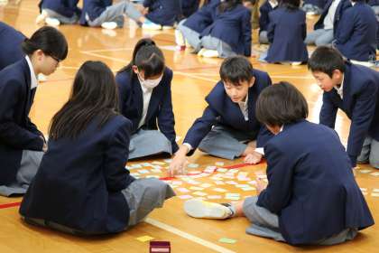 1年生・・・百人一首大会(8) 公開日 2018/01/18 更新日 2018/01/18 1年生 でも、みんな男子も女子もクラスもバラバラのなか、 頭を寄せ合い盛り上がった百人一首大会でした。 【結果発表】 優勝・・・1年2・11組 準優勝・・8組 3位・・・1組