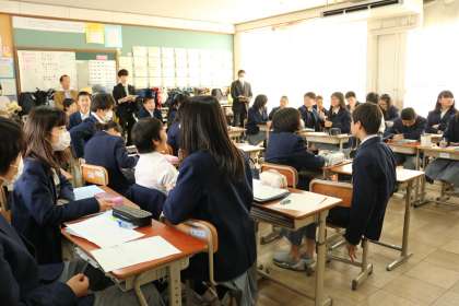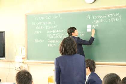 道徳授業・・・1年7組 公開日 2018/01/31 更新日 2018/01/31 1年生 内容・・・畏敬の念 教材・・・ニューヨークサン新聞社説1897年9月21日 名前カードで当たった人に意見を求めている様子。 それぞれにしっかり答えています。