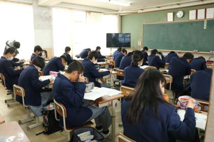 学びの時間・・・1.2年生 公開日 2018/02/19 更新日 2018/02/19 学校の様子 今週、水、木、金と1.2年生は学年末テストです。 終学活前に、学びの時間が行われ、皆さん勉強していました。 写真は2年生の様子です。 しっかり取り組んでいます。