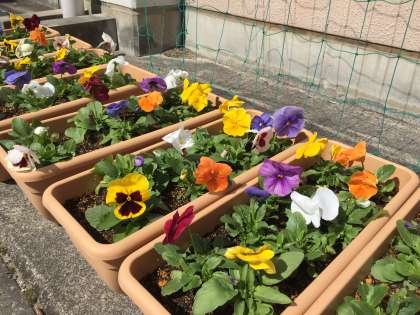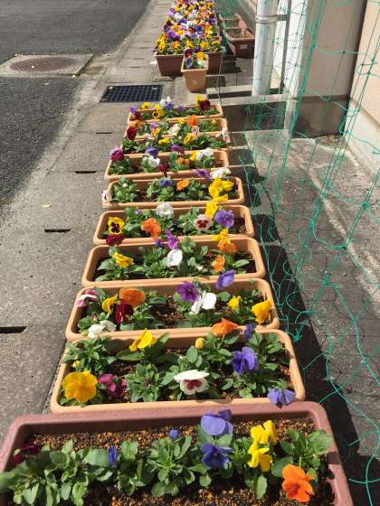 緑化委員とボランティアの皆さんが植えてくれたパンジーが