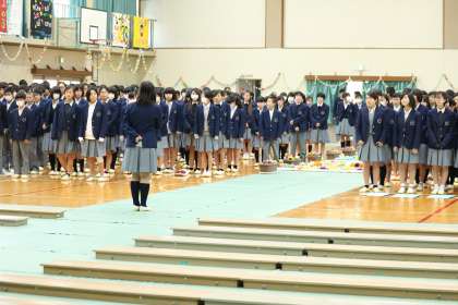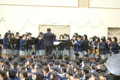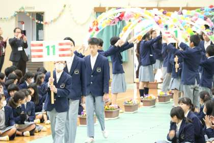 3年生を送る会・開会 公開日 2018/03/13 更新日 2018/03/13 学校の様子 生徒会の人から「いい会になるよう宜しくお願いします」と言う1,2年生に向けた挨拶の後、吹奏楽部の演奏で、花道を3年生が入場します。 先頭は11組。