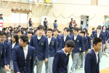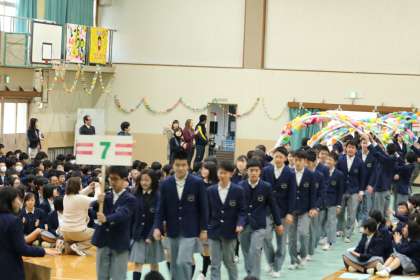1,2年生の拍手の中、花道を入場します。