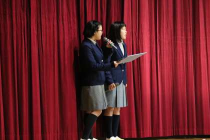 3年生を送る会・生徒会オープニング(1) 公開日 2018/03/13 更新日 2018/03/13 学校の様子 まずは、生徒会の皆さんのオープニングセレモニー? サンシャインに扮したり、お笑い要素満載・・・♪ 見ている先輩達も、大いに笑って盛り上げてくれています。