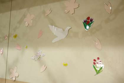3年生を送る会・みんなで作った♪ 公開日 2018/03/13 更新日 2018/03/13 学校の様子 くす玉割れた〜と見入る3年生。 壁面には緑化委員会制作の装飾が・・・♪ いろんな所をみんなで分担して作り上げています。