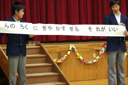 3年生を送る会・川柳表彰(2) 公開日 2018/03/13 更新日 2018/03/13 学校の様子 3年生の部表彰 金賞 3年1組『体育の部 家に帰ると 足クサイ』 銀賞 3年6組『さんのろく にぎやかすぎる それがいい』 銅賞 3年8組『3の8 クラスのメンバー 動物園』 ん〜〜〜どれも素敵です・・・・・・・・・・
