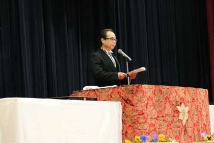 PTA会長から、マハトマ・ガンディーの言葉が送られました。