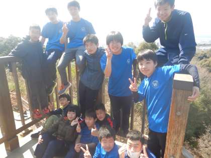 藤森中学校から15キロメートルの道のりを歩いて,キャンプ場「友愛の丘」へ。