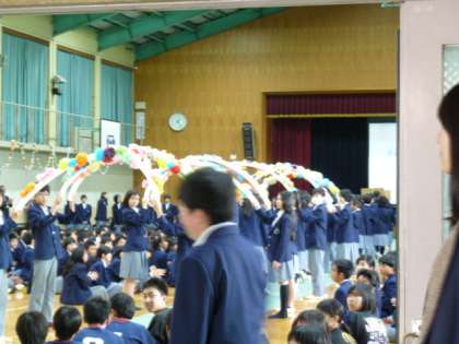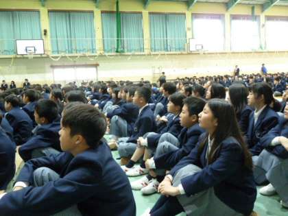 新入生歓迎会・部活動紹介(1年生の反応) 公開日 2018/04/11 更新日 2018/04/11 1年生 先輩たちとの対面を前に、どきどきしていた新入生も、 生徒会の楽しい企画や各部活動の工夫を凝らした紹介に、 すっかりリラックスした表情になりました。 今日から始まる部活動見学にも張り切って出かけました。