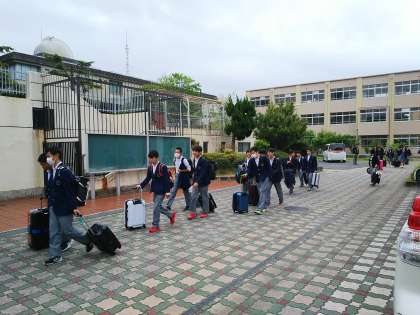 修学旅行出発 公開日 2018/04/24 更新日 2018/04/24 3年生 4月24日(火)雨のぱらつく中,結団式を行い沖縄に向けてバス出発しました。三日間の修学旅行スタートです。これから写真が届き次第,随時アップしていきます。