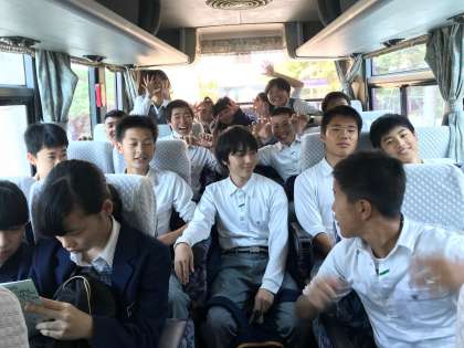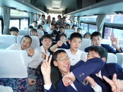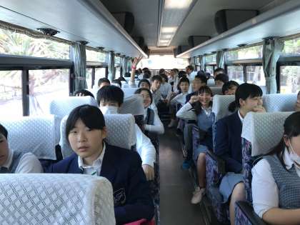 豊崎校園へ向かうバス車内の様子です