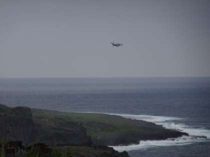 島の水源地、湧出(ワジィー)見学 伊江島でもオスプレイ