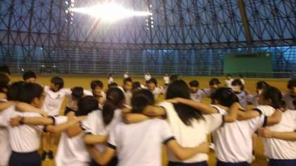 円陣で気合いを入れます。