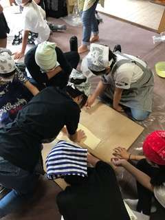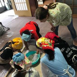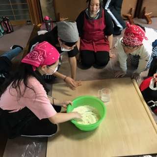 小麦粉に塩水を混ぜて捏ねたあと、延ばします。