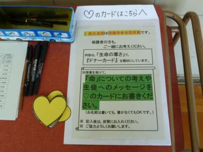休日参観(1) 公開日 2018/06/16 更新日 2018/06/16 学校の様子 3年生の道徳の様子です。 ドナーカードについて 参観の保護者方にもご意見をいただきました。 クラスによって、座り方にもいろいろな工夫があります。