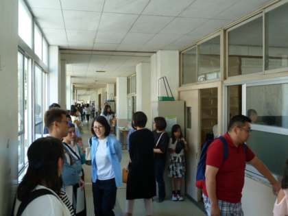 廊下には参観の保護者でいっぱいでした。