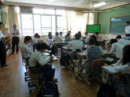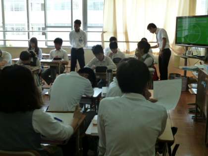 今日は、数学の授業を教育委員会の先生に指導していただく研修が
