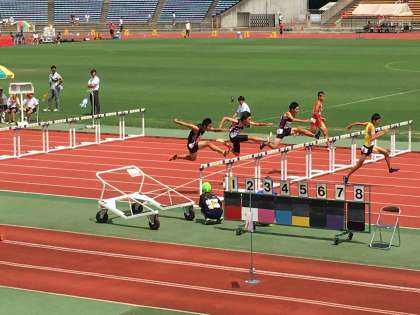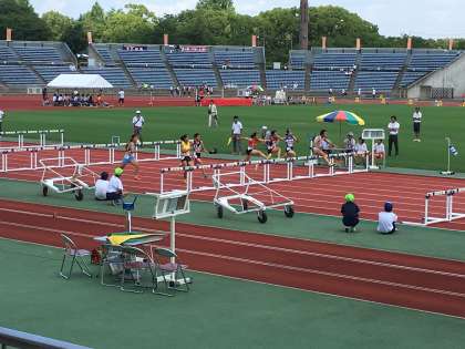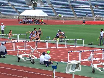 陸上部府下大会 公開日 2018/07/27 更新日 2018/07/27 学校の様子 7月27日(金)陸上部府下大会 西京極陸上競技場 女子100mハードルと男子110mハードルの様子です。 3人とも一生懸命に走り抜けていきました。
