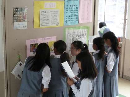 1.読書オリエンテーションクイズ(図書委員会) 2.お茶会(茶道部) 3.活動成果の展示(PC部)