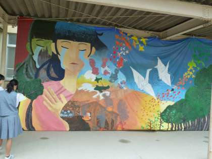 1.キッズゲルニカ(美術部) 2.藤中祭応援フラッグ(緑化委員会) 3.勝利の横断幕(女子バレー部)