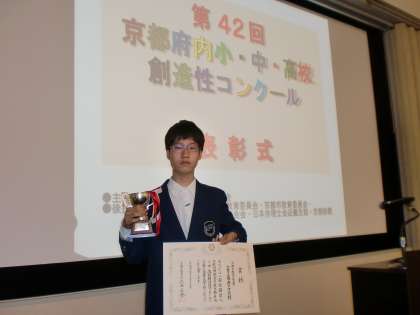 第42回小・中・高校創造性コンクールにおいて,本校3年生が銀賞を受賞しました。夏休みの課題であった,自然研究の内容が高く評価されての受賞です。おめでとうございます。