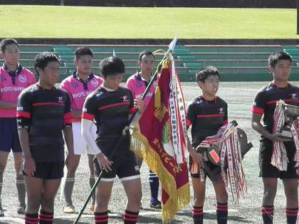 残り1分で1トライ返されますが、その後のキックオフから相手ボールを奪い、