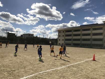 【サッカー部】U-13 公開日 2018/10/22 更新日 2018/10/22 学校の様子 U−13サッカーリーグ2018京都 10月20日(土)に1年生中心の大会が行われました。藤森中はCグループ(藤森・太秦・上京・桂・神川・桂川)に入り、1節目が太秦中との試合でした。結果は9−1で勝ち、良いスタートを切ることができました!次節は11月24日(土) に桂会場で上京中と対戦します!応援よろしくお願いします!