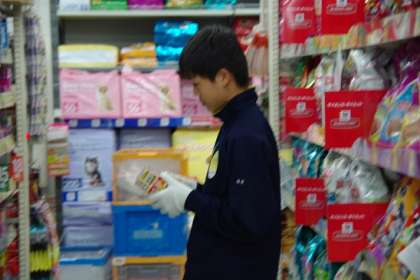 ホームセンターでのチャレンジ体験の様子です。商品の補充とレジの補助をしていました。どの商品が,どこにあるのか探してキョロキョロしていました。慣れるには,もう少し時間がかかりそうです。