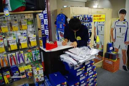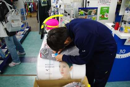 チャレンジ体験 公開日 2018/11/01 更新日 2018/11/01 2年生 スポーツ用品店でのチャレンジ体験の様子です。こちらの店舗は,バレーボールと水泳の専門店です。男子バレーボール部の2人がお世話になっています。商品の数を確認したり,伝票を書いたり,値札を付けたり,色々な体験をさせていただいていました。