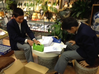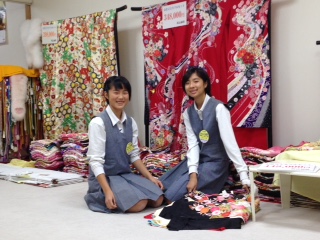 商店街の陶器店と呉服店でのチャレンジ体験の様子です。陶器店では、ダイレクトメールのチラシを封入する作業をしていました。単純作業のようですが、お客様に届く大切なものです。丁寧に粘り強く作業をしていました。呉服店では、展示する着物を選ばせてもらっていました。着物のたたみかたも教わったそうです。あまり触れることのない呉服文化に触れさせていただける素敵な経験ですね。