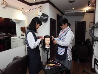 一枚目:美容院では、編込みの練習をしていました。少しずつ、手際よく美しく。美容院での宿題は、笑顔の練習だそうです。