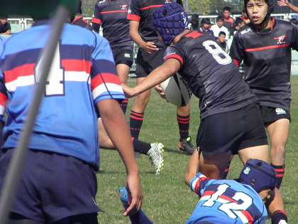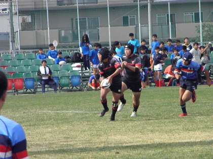 ラグビー近畿大会 公開日 2018/11/05 更新日 2018/11/05 学校の様子 11月4日(日)近畿大会1回戦 花園ラグビー場第2グランド VS東海大学付属大阪仰星高等学校中等部 47−15 相手は先の太陽生命カップ全国大会の優勝校でしたが、当日は3年生が修学旅行のため不在で2年生中心のチームでした。 前半から力の差を感じさせる試合で勝利することができました。